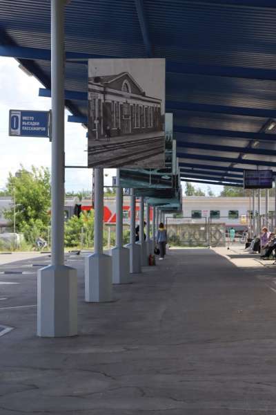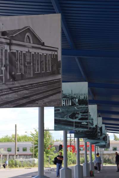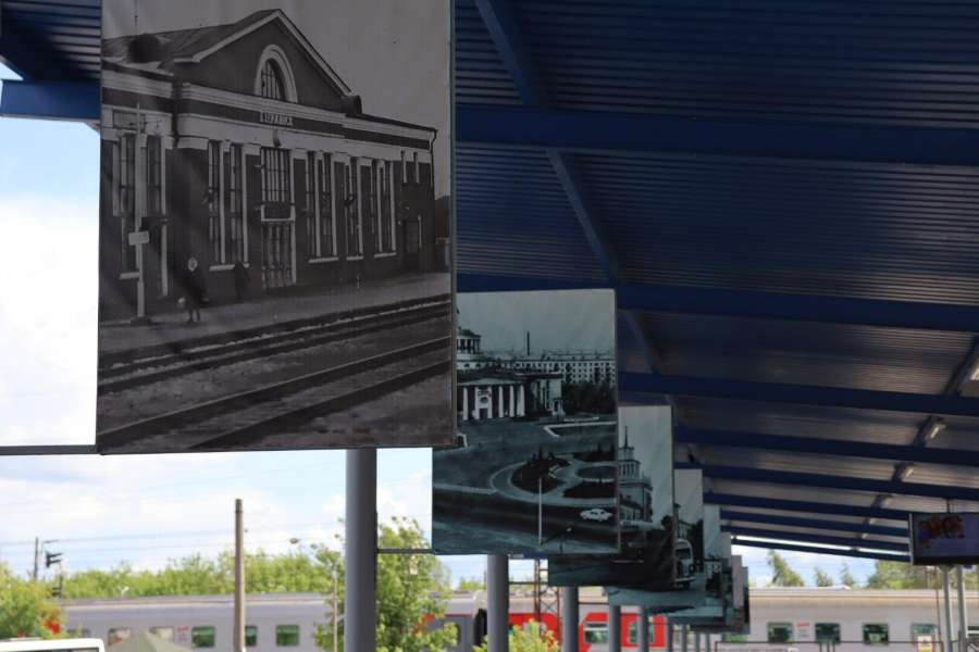- перрон украшают плакаты с изображением старого и нового Дзержинска;