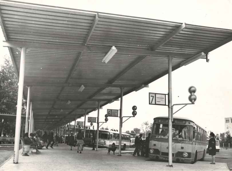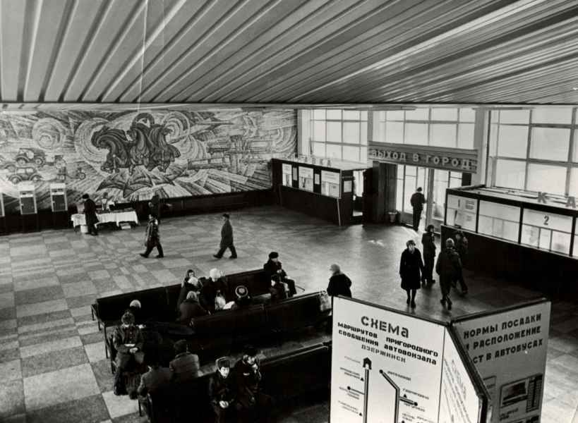 Изначально автовокзал находился на ул. Урицкого, где спортивный стадион и спортшкола. Площадка была открытая и пассажиры ожидали отправление транспорта на улице. В закрытом помещении находились только кассы.